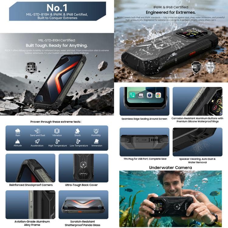 Điện thoại Blackview ROCK 1 bền bỉ, 8GB + 256GB, 6,56 inch Android 16 MT6769V/CB Helio G81 Octa Core, Mạng: 4G, OTG, NFC