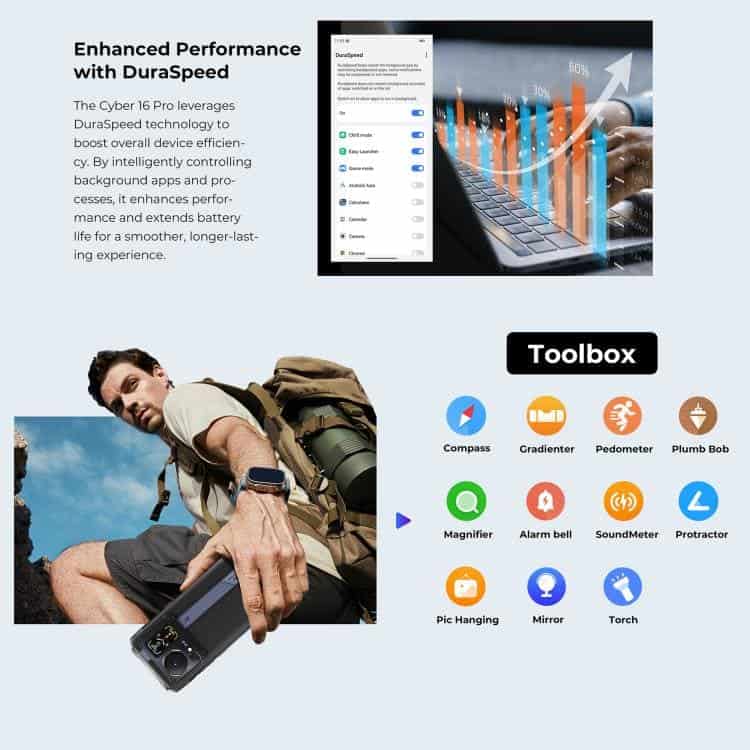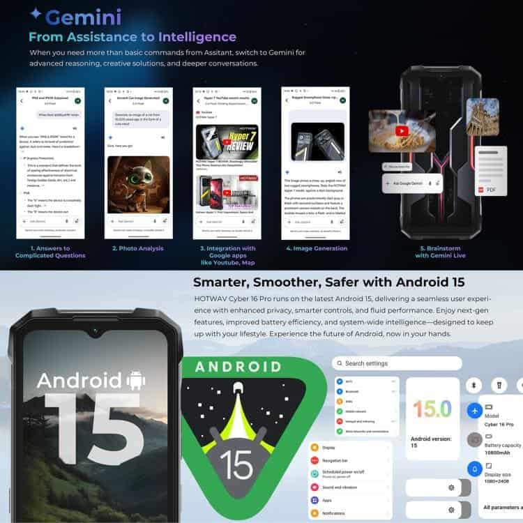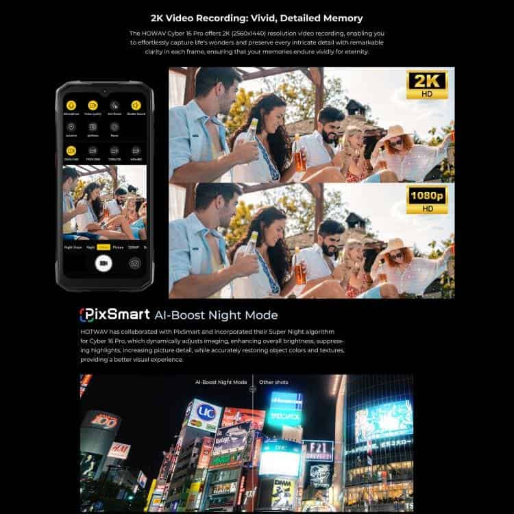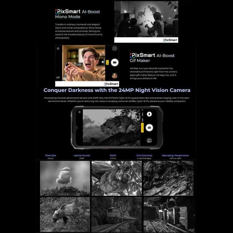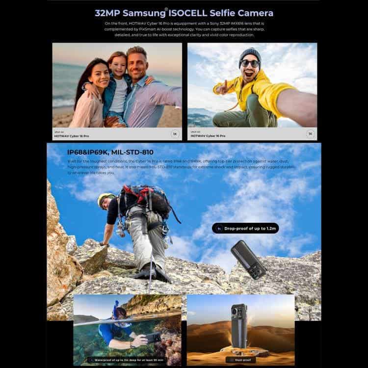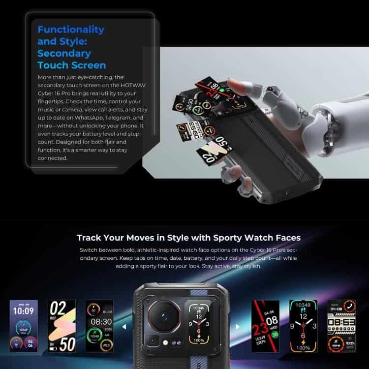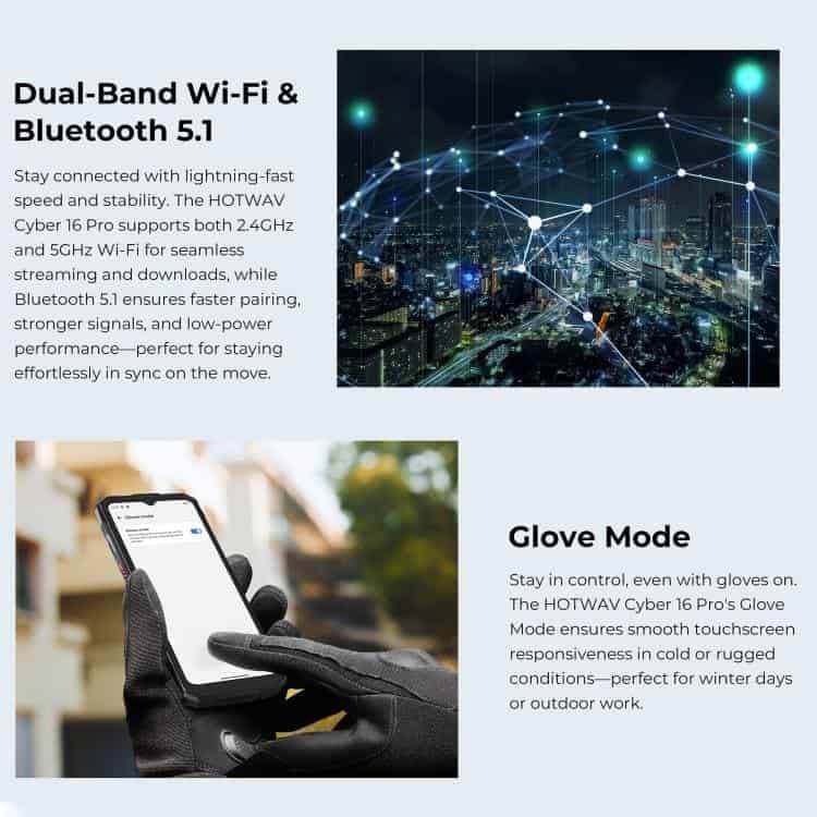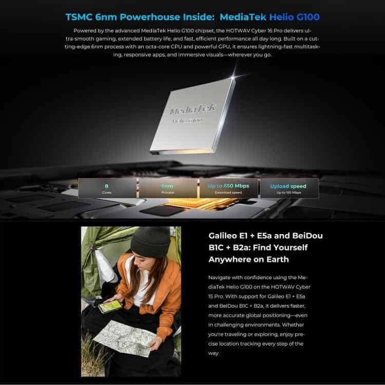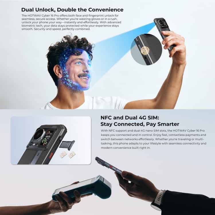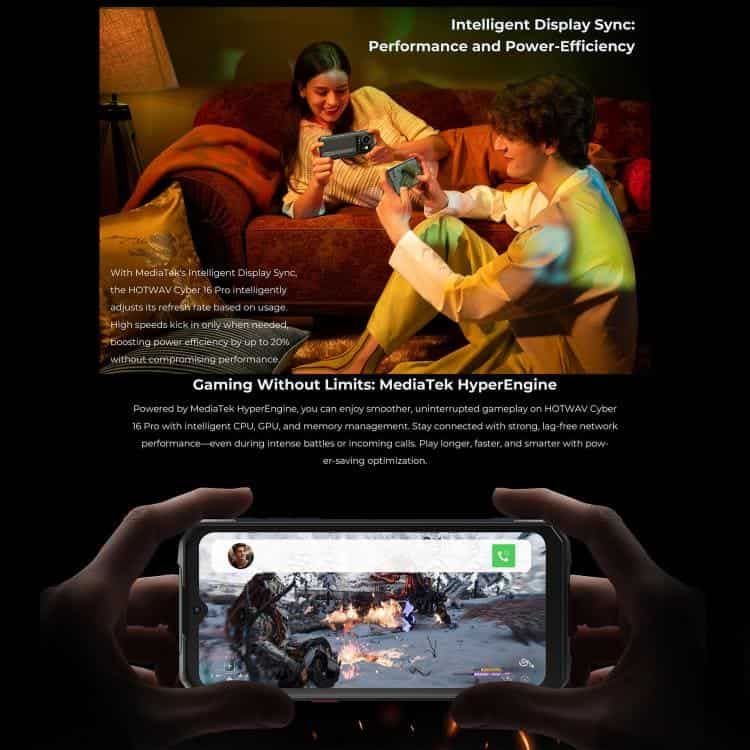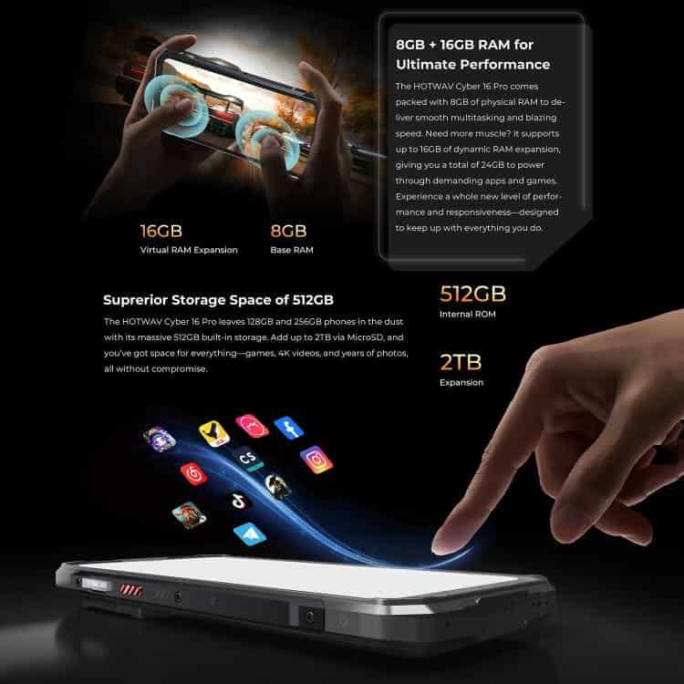 Điện thoại siêu bền HOTWAV Cyper 16 Pro, 8GB+512GB, màn hình 6.6 inch, Android 15, chip MediaTek MT6789H Helio G100 Octa Core, kết nối mạng 5G, OTG, NFC
