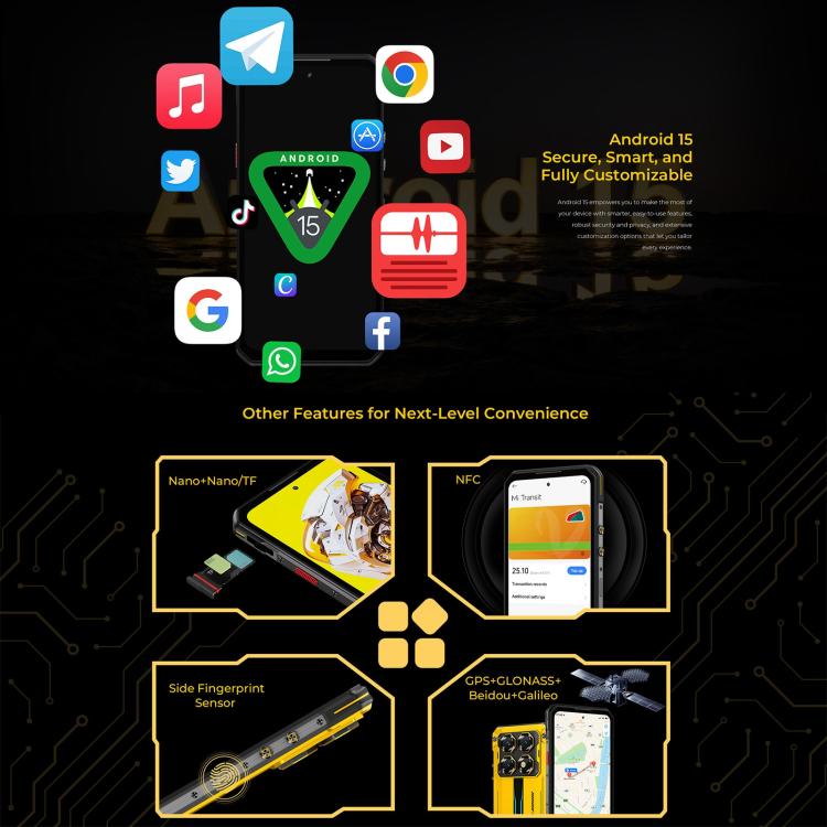 Điện thoại siêu bền Oukitel WP60, 16GB+512GB, Tầm nhìn ban đêm, Camera 108MP, Cảm biến vân tay cạnh bên, Màn hình 7.2 inch, Android 15, Bộ xử lý MediaTek Dimensity 7025 Octa Core, NFC, OTG, Mạng: 5G