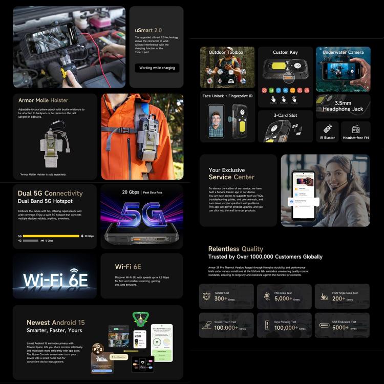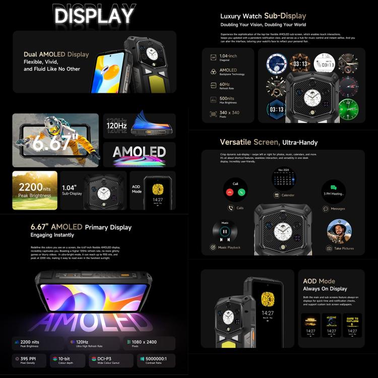 Điện thoại Ulefone Armor 29 Pro phiên bản nhiệt, bền bỉ, 16GB + 512GB, nhìn ban đêm, 6,67 inch + 1,04 inch Android 15 MediaTek Dimensity 7400 Octa Core, Mạng: 5G, OTG, NFC